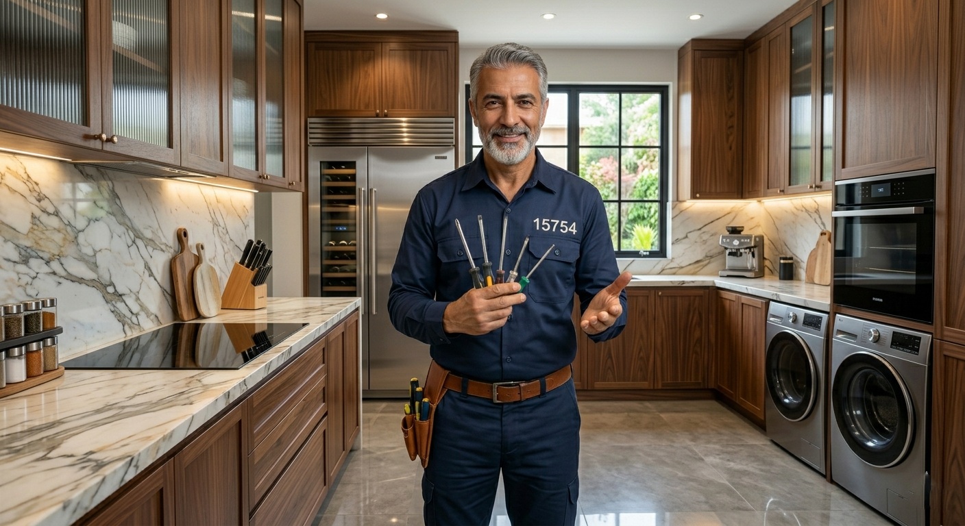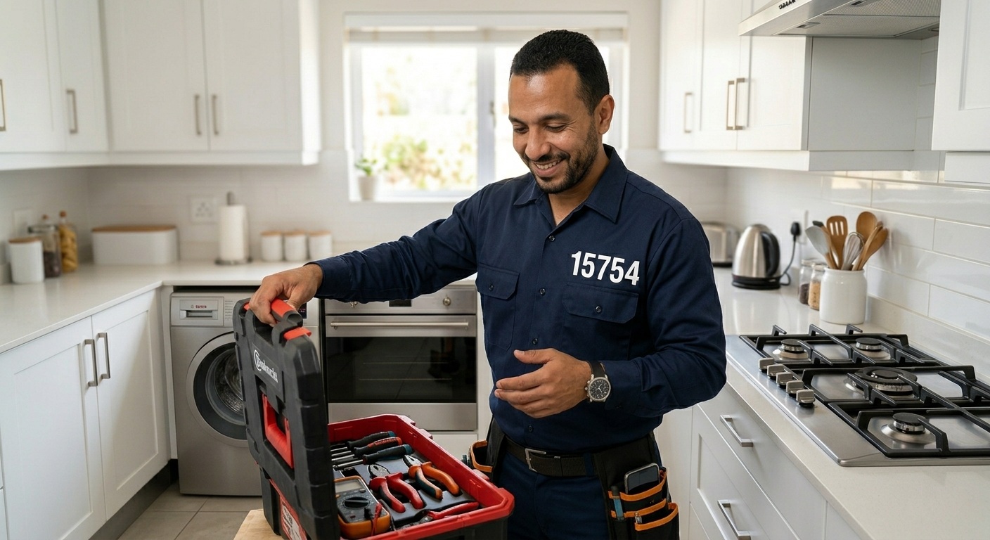- تحديد موقع الجهاز بدقة: تأكد من أن الجهاز (مثل الثلاجة أو الغسالة) في مكان مفتوح ويمكن للفني العمل حوله بسهولة، وإذا كان الجهاز ثقيلاً ففكر في إخلاء المساحة المجاورة، لأن ذلك يسمح للفني بالحركة بحرية ويقلل وقت العمل.