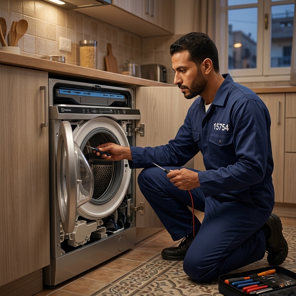 - جهز معلومات الجهاز: قبل الاتصال، اكتب رقم الموديل والرقم التسلسي للغسالة (موجود عادةً على ملصق خلف أو بجانب الباب). سيسرع هذا عملية التعريف على النظام.