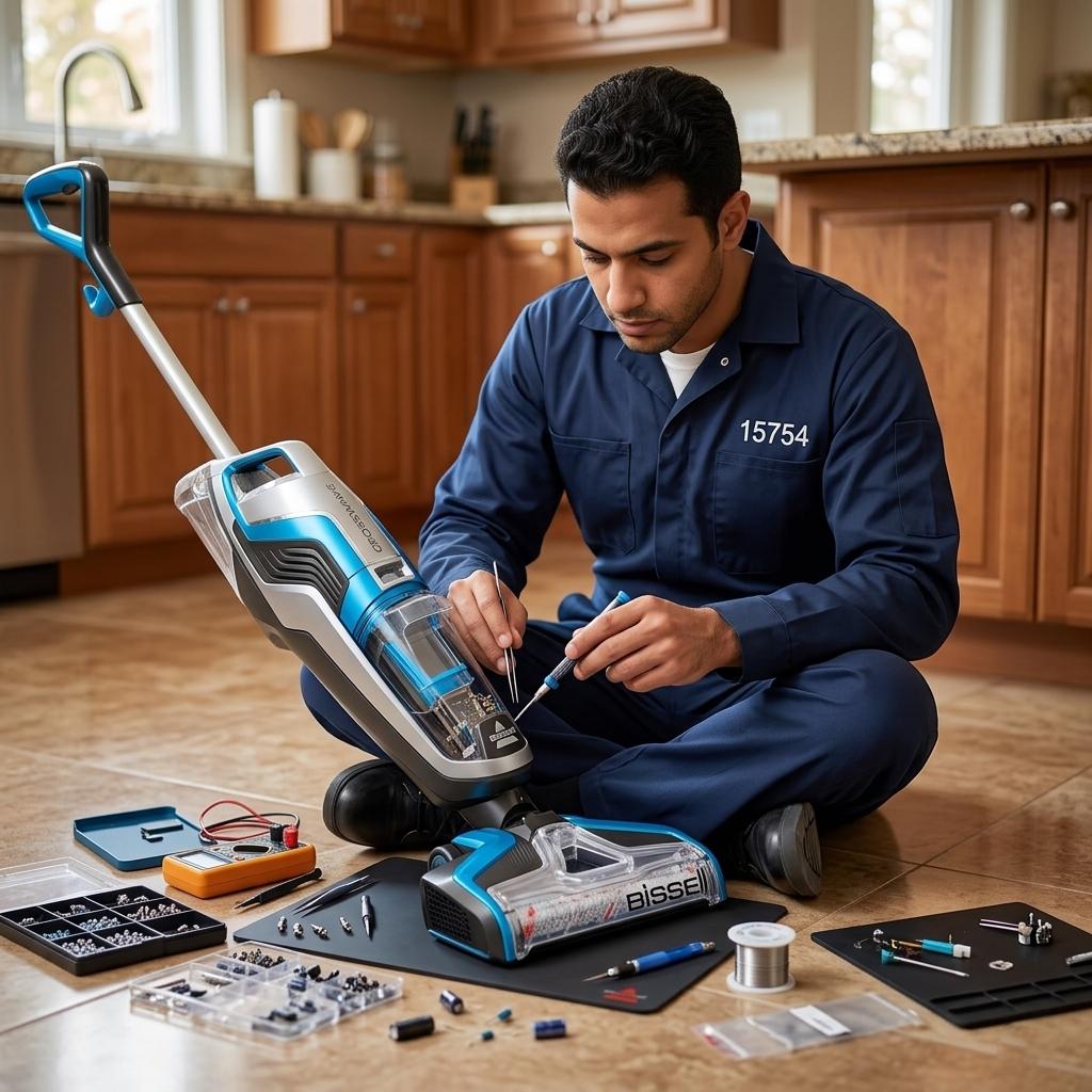 1. التشخيص الأولي: فحص المكنسة لتحديد العطل الرئيسي، وهذا يتطلب معرفة بـ مميزات وعيوب مكانس سامسونج لفهم المشاكل الشائعة مثل ضعف الشفط أو الضوضاء غير المعتادة.